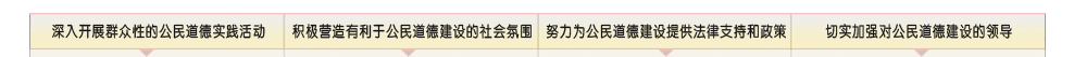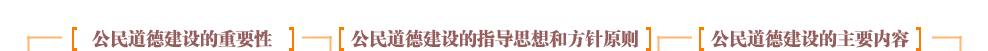 公民道德建设是一个复杂的社会系统工程,要靠教育,也要靠法律、政策和规章制度。必须综合运用各种手段,把提倡与反对、引导与约束结合起来,通过严格科学的管理,培养文明行为,抵制消极现象,促进扶正祛邪、扬善惩恶社会风气的形成、巩固和发展…… |
